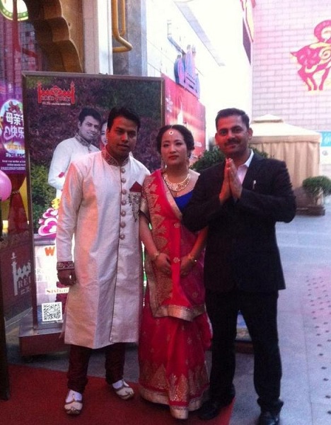 印度總理莫迪將于5月14日至16日對中國進(jìn)行正式訪問,將訪問西安、北京和上海。在西安生活的印度人也格外受到大家的關(guān)注。5月11日晚,印度小伙尼尚特跟陜西華縣姑娘王爽,在西安一家印度餐廳舉行了具有印度特色的婚禮。這對新婚夫婦昨晚向華商報記者講述了兩人的“婚事”。兩人雖然是同一個單位,卻在印度餐廳意外相識,迅速碰撞出愛情的火花,認(rèn)識不到一年就結(jié)了婚。