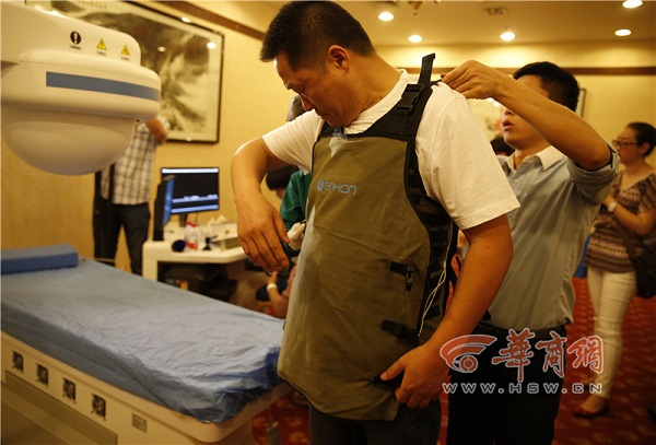 特制的“馬甲”其實是一個便攜記錄儀,它能記錄下圖像,并通過數(shù)據(jù)線傳到電腦里,供醫(yī)生分析和診斷。