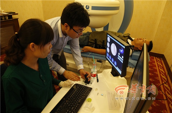2015年5月17日,西安5月17日,在陜西省消化內(nèi)鏡學(xué)分會主辦的磁控膠囊內(nèi)鏡臨床研討會上,一個膠囊內(nèi)鏡機(jī)器人亮相了。醫(yī)生正在通過操控膠囊機(jī)器人檢查。