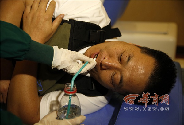 志愿者魏先生喝下膠囊機(jī)器人