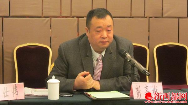 2015年1月20日上午,“陜西省養(yǎng)生協(xié)會(huì)暨四季華庭酒店彭祖養(yǎng)生飲食文化研討會(huì)”在西安四季華庭酒店四樓宴會(huì)廳召開(kāi)。圖為世界彭氏宗親聯(lián)誼總會(huì)副總會(huì)長(zhǎng)、陜西武盾實(shí)業(yè)(集團(tuán))公司董事長(zhǎng)、陜西彭祖養(yǎng)生文化研究會(huì)會(huì)長(zhǎng)、陜西川渝商會(huì)常務(wù)副會(huì)長(zhǎng)、西安四季華庭酒店董事長(zhǎng)彭亭彬。新西部網(wǎng) 王順利攝