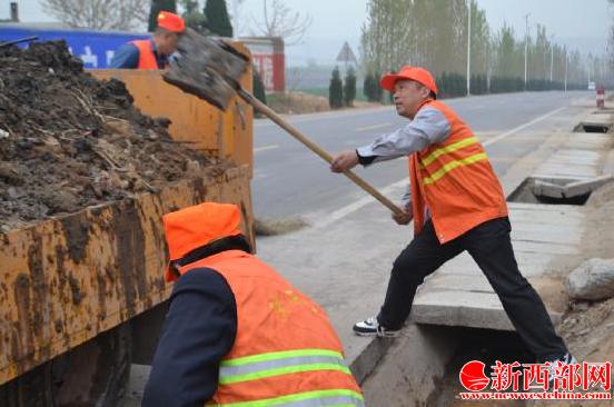 圖為潼關(guān)段趙水洲段長在清理水溝