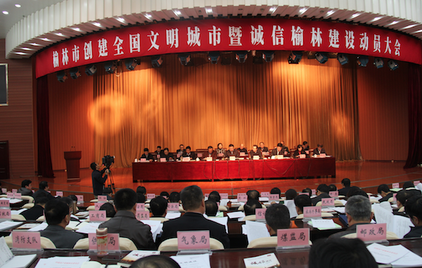 榆林市委常委,市人大分管領(lǐng)導(dǎo),市政府副市長,市政協(xié)分管領(lǐng)導(dǎo);各縣區(qū)委書記、宣傳部長、文明辦主任;市直創(chuàng)文重點(diǎn)單位、常規(guī)單位主要負(fù)責(zé)人;榆陽區(qū)、橫山縣政府主要負(fù)責(zé)人,榆陽區(qū)各街道辦事處書記、主任和各社區(qū)書記;部分近郊鄉(xiāng)鎮(zhèn)黨委書記;橫山縣相關(guān)鄉(xiāng)鎮(zhèn)黨委書記等參加了此次動(dòng)員大會。會上,榆陽區(qū)、神木縣、市教育局負(fù)責(zé)人分別就創(chuàng)建全國文明城市、誠信榆林做表態(tài)發(fā)言。