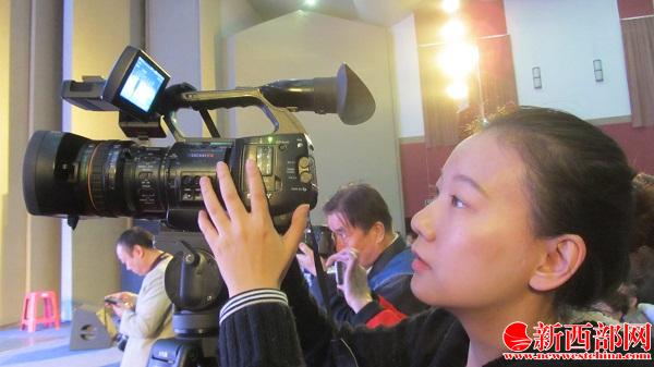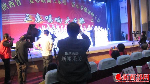媒體記者采訪陜西省慈善協(xié)會和陜西省音樂家協(xié)會聯(lián)合主辦的2014全省“愛心歌曲大家唱”群眾歌詠演唱大賽。 胡運森攝(新西部網(wǎng)發(fā))