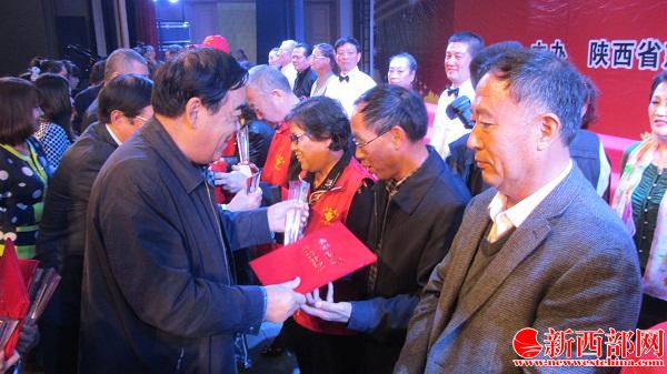 陜西省慈善協(xié)會會長劉維?。ㄇ白螅┫颢@獎團隊代表頒發(fā)證書和獎杯。新西部網(wǎng) 王順利攝