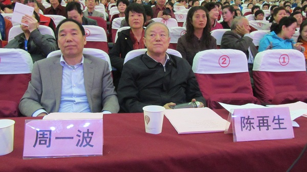 由陜西省慈善協(xié)會和陜西省音樂家協(xié)會聯(lián)合主辦的2014全省“愛心歌曲大家唱”群眾歌詠演唱大賽10月23日上午在西安舉行。前排左一系陜西省書法家協(xié)會主席周一波,前排右一系陜西省慈善協(xié)會名譽會長陳再生。新西部網(wǎng) 王順利攝