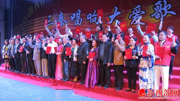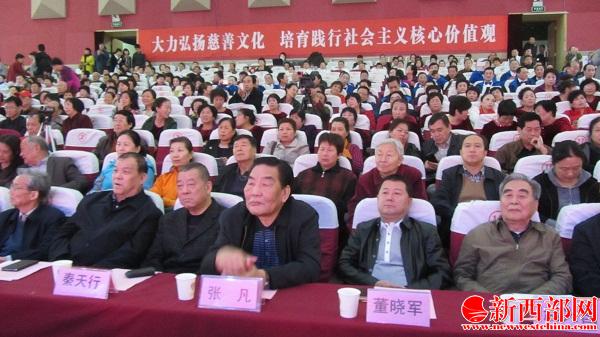 由陜西省慈善協(xié)會和陜西省音樂家協(xié)會聯(lián)合主辦的2014全省“愛心歌曲大家唱”群眾歌詠演唱大賽10月23日上午在西安舉行。前排左一系陜西省慈善協(xié)會副會長孫忠信,前排左二系《陜慈快訊》總編輯胡運森。新西部網(wǎng) 王順利攝