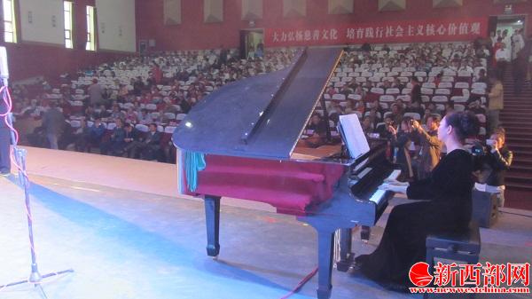 15支參賽隊伍按抽簽順序上場比賽,圍繞慈善、愛心、奉獻等主題為觀眾獻上了精彩的演出,每個團隊演唱兩首曲目,一首為組委會指定的原創(chuàng)歌曲《愛心天下》,另一首為自選愛心歌曲。此次組委會推薦的15首愛心歌曲中的三分之二都是由陜西省專業(yè)和業(yè)余作者創(chuàng)作的原創(chuàng)音樂作品。新西部網(wǎng) 王順利攝