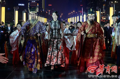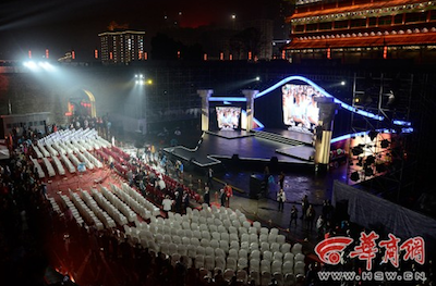 2014年10月20日晚,首屆絲綢之路國際電影節(jié)開幕式在西安南門甕城內(nèi)舉行。陜籍著名演員閆妮作為本次國際電影節(jié)的形象大使,率先從南門廣場進入甕城。