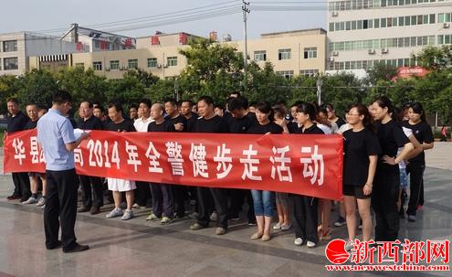 金秋八月,風(fēng)清氣爽。為全面推進(jìn)公安系統(tǒng)群眾性體育活動的開展,進(jìn)一步活躍警營文化生活,繼續(xù)發(fā)揚(yáng)公安民警“熱愛健身,熱愛生活”的優(yōu)良傳統(tǒng),8月26日早晨,華縣公安局組織開展了2014年全警健步走活動,政委康平等局領(lǐng)導(dǎo)同縣局民警共150余人參加了活動。