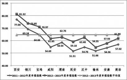 陜西省信息中心分析報(bào)告指出:2012-2013年度,全省居民幸福指數(shù)較上年度穩(wěn)步提升,從居民生活質(zhì)量、居民生活條件、居民幸福感受三個(gè)方面分解來(lái)看,全省居民生活質(zhì)量增長(zhǎng)15.56%,所包含的收入水平、消費(fèi)水平、就業(yè)水平、社會(huì)保障水平、公共衛(wèi)生質(zhì)量五項(xiàng)指標(biāo)均有不同程度進(jìn)步,其中就業(yè)水平進(jìn)步顯著;全省居民生活條件增長(zhǎng)10.58%,所包含的教育條件、出行條件、人居環(huán)境、居住條件和公共衛(wèi)生條件均有所進(jìn)步,其中教育條件、居住條件和公共衛(wèi)生條件改善顯著;全省居民幸福感受下降4.54%,家庭生活滿意度、業(yè)余生活滿意度、城市發(fā)展認(rèn)同滿意度、社會(huì)環(huán)境滿意度四項(xiàng)指標(biāo)外,其余指標(biāo)均有所下降,心理健康滿意度下降最為明顯。