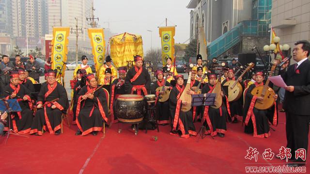 身著宮廷禮服的樂(lè)隊(duì)在表演。這是聯(lián)合國(guó)教科文組織批準(zhǔn)的人類非物質(zhì)文化遺產(chǎn)長(zhǎng)安古樂(lè)與陜西省非物質(zhì)文化遺產(chǎn)長(zhǎng)安佛樂(lè)漢唐宮廷名曲《醉龍吟》,參加演奏的是目前長(zhǎng)安古樂(lè)在西安保護(hù)傳承的三大主力民間古樂(lè)社團(tuán)——陜西長(zhǎng)安龍族妙音古樂(lè)藝術(shù)團(tuán)、長(zhǎng)安大漢古樂(lè)團(tuán)、西安佛教古樂(lè)社。演奏司鼓的是非物質(zhì)遺產(chǎn)長(zhǎng)安古樂(lè)政府認(rèn)定的六大傳承人之一,陜西省非物質(zhì)文化遺產(chǎn)長(zhǎng)安佛樂(lè)領(lǐng)軍傳承人李鎧博士。王順利攝