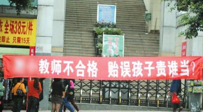 家長在學(xué)校門口拉橫幅。(圖據(jù)網(wǎng)絡(luò))