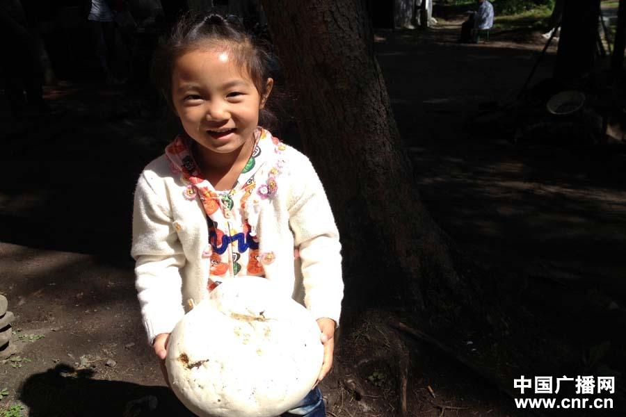 發(fā)現(xiàn)這個超級大蘑菇的是一名5歲的小朋友崔子函,她告訴記者:她發(fā)現(xiàn)的超級大蘑菇不止一個,還有一個裂成兩半了,還有一個更大,都抱不下來,在別的地方還發(fā)現(xiàn)了一個像我抱的那個一樣大,我太高興了,從來沒見過這么大的蘑菇。