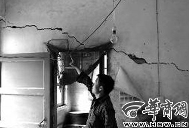 路歲民說,他家三年前就鑒定為危房,但至今他還和妻子住在這里。有時晚上睡了還能聽到房屋“咯吱”、“咯吱”裂開的聲音。據(jù)了解,西固村最先在2009年出現(xiàn)裂縫。那年夏天,大約十余戶房屋出現(xiàn)裂縫。村民楊雪梅說,開始縫隙不大,村民并沒在意,但過了一年,出現(xiàn)同樣問題的農(nóng)戶越來越多,裂縫情況也越來越嚴(yán)重。到了2011年夏天,全村房屋出現(xiàn)裂縫的農(nóng)戶已超過三分之二。