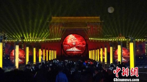 當(dāng)日20時許,西安城墻跨年祈?;顒釉谟缹庨T拉開帷幕。大型光影藝術(shù)表演《長安頌》的炫彩華光在南門上空震撼開演,盡顯現(xiàn)代科技的魅力。西安交通大學(xué)等百余名高校學(xué)生代表及市民、游客在絢麗奪目的幻影中觸摸盛世長安的繁華。同時,在西安城墻西南城角、東南城角,以古老城體為載體、以現(xiàn)代科技為手段,西安城墻為西安人民講述著曾經(jīng)在這座城里的點滴故事,使參觀民眾全面感受時代的發(fā)展。
