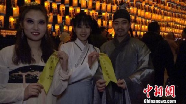光影表演剛剛落幕,民眾便結(jié)伴同行,走進(jìn)永寧門參觀。在西安城墻上,一條集滿萬千祝愿的祈愿燈廊讓人感受到新年的愿景。新年伊始,西安城墻沿循千年祈福傳統(tǒng),邀請現(xiàn)場的所有嘉賓以書寫祈福條的形式記錄下人們對新年的祝福,通過這種流傳已久的祈福形式,充分展現(xiàn)年節(jié)之趣。將寫滿祝福的祈福條懸掛至祈愿燈下,展現(xiàn)當(dāng)代人們對新春的祝福和對美好未來的期盼,讓現(xiàn)場的人們感受大西安跨年活動最盛情的文化魅力。