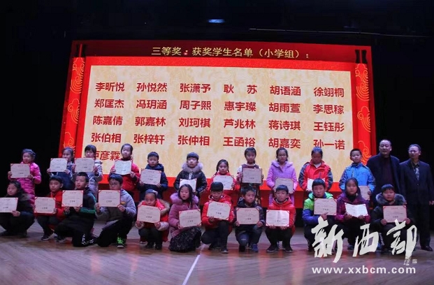 10時許進入頒獎環(huán)節(jié)。由此次大賽頒獎嘉賓及陜西組委會的評審老師為獲得一、二、三等獎的小學組、初中組、高中組選手頒獎,并合影留念。頒獎結(jié)束后,陜西組委會評委對小學、初中、高中組的優(yōu)秀作品進行了現(xiàn)場點評,小學、初中、高中組的優(yōu)秀代表上臺發(fā)表獲獎感言。最后,優(yōu)秀指導教師上臺領(lǐng)取優(yōu)秀指導獎、優(yōu)秀組織單位上臺領(lǐng)取了優(yōu)秀組織獎,來自西安交大航天學校的優(yōu)秀指導教師王小宇老師上臺發(fā)表獲獎感言。伴隨著會場里的陣陣掌聲,第26屆“葉圣陶杯”全國中小學生新作文大賽陜西省省級賽圓滿閉幕。