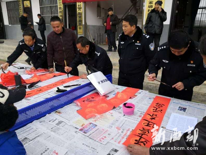 當(dāng)天,公安局組織警營書法愛好者為全村160余戶群眾義務(wù)書寫春聯(lián)380余幅。