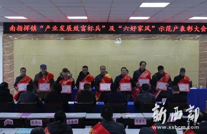 送獎品,樹立典型示范帶動。正月十七,南指揮鎮(zhèn)召開了脫貧攻堅先進典型表彰大會,21名產(chǎn)業(yè)發(fā)展典型和“六好家風(fēng)”示范戶受到表彰,他們身披紅綢、胸帶紅花、手捧榮譽證書,臉上洋溢著幸福的微笑。這是2018年底通過各村民主評選出的先進典型,也是2018年以來通過自己勤勞的雙手,發(fā)展種植養(yǎng)殖增收致富的貧困戶和在困難面臨不離不棄的和睦家庭,在全鎮(zhèn)12個村起到了示范帶頭作用,鎮(zhèn)政府獎勵他們?nèi)詣酉匆聶C一臺,表彰先進,鼓勵其他未脫貧建檔立卡貧困戶依托國家扶貧政策,發(fā)展產(chǎn)業(yè),早日脫貧奔小康。