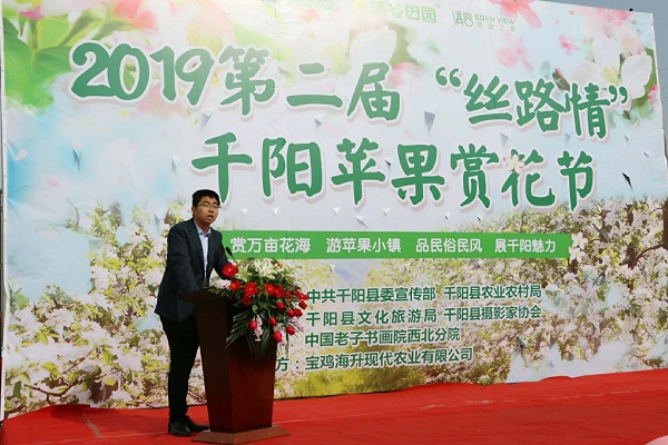 營味燕舞四月天,蘋果花開滿枝丫,4月13日上午,由千陽縣委宣傳部、千陽縣農(nóng)業(yè)農(nóng)村局主辦,千陽縣文化旅游局、千陽縣攝影家協(xié)會、中國老子書畫院西北分院協(xié)辦,寶雞海升現(xiàn)代農(nóng)業(yè)有限公司承辦,2019第二屆“絲路情”千陽蘋果賞花節(jié)在海升現(xiàn)代農(nóng)業(yè)園區(qū)舉行。