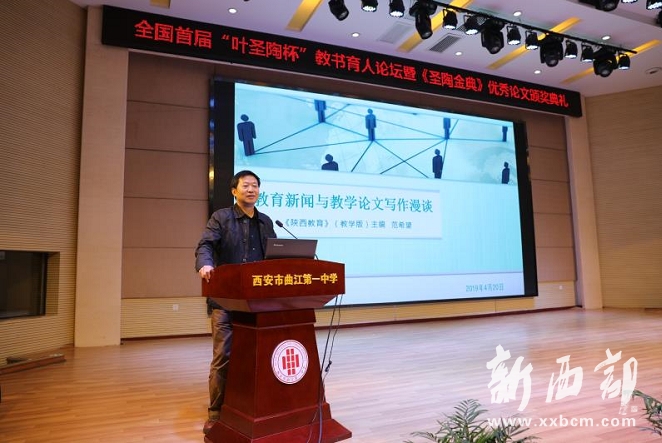《陜西教育》雜志(教學版)主編范希望做了《教育新聞與教學論文寫作漫談》的主題報告。他講到陜西教育報刊社目前編輯出版的九種報刊,同時對自由來稿中存在的問題和必須掌握的教育新聞寫作的基本知識、教育新聞的深度報道與策劃的方法做了深入探討。