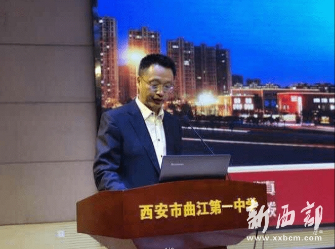 陳勇剛副校長致辭并介紹了西安市曲江第一中學開展的賽教活動、說課比賽等教育交流活動以及豐富多彩的學生社團。