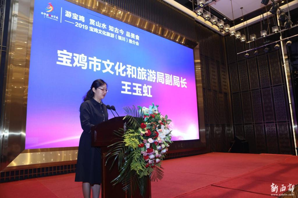6月25日,由寶雞市文化和旅游局主辦,寶雞大水川旅游景區(qū)承辦的2019寶雞文化旅游(銀川)推介會(huì)在寧夏銀川市成功舉辦。此次推介會(huì)以“游寶雞、賞山水、知古今、品美食”為主題,全方位、多角度對寶雞文化旅游產(chǎn)品進(jìn)行了宣傳推廣。銀川市文化旅游廣電局、銀川市旅行社及文旅企業(yè)負(fù)責(zé)人、20余家新聞媒體記者共約100余人應(yīng)邀參會(huì)。寶雞市陳倉區(qū)、鳳縣、渭濱、金臺、千陽、風(fēng)翔、隴縣、眉縣、麟游及3A以上旅游景區(qū)、旅行社等50余家涉旅企業(yè)參加了推介會(huì)。