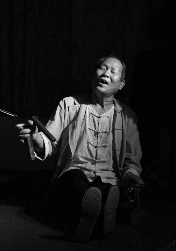 圖為香港浸會大學(xué)附屬學(xué)校王錦輝中小學(xué)學(xué)生吳子喬拍攝的老腔藝人。