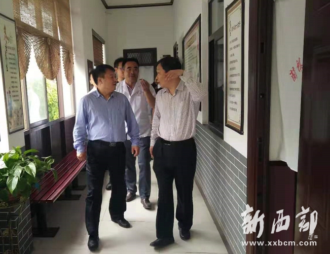 崔鐵寧院長(中)陪同富平縣副縣長惠新宇(右)和富平縣衛(wèi)健局局長王曙光(左)在薛鎮(zhèn)中心衛(wèi)生院檢查疼痛科工作。