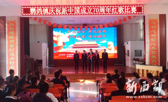 為慶祝中華人民共和國70周年華誕,推動“不忘初心、牢記使命”主題教育走深走實(shí),進(jìn)一步激發(fā)鎮(zhèn)村黨員干部不忘初心謀發(fā)展、牢記使命勇?lián)?dāng)?shù)膴^斗激情。9月29日,鸚鴿鎮(zhèn)“不忘初心、牢記使命,歌唱祖國、唱響鸚鴿”紅歌比賽在鸚鴿鎮(zhèn)中心小學(xué)多功能廳隆重舉行。鎮(zhèn)黨委、鎮(zhèn)政府領(lǐng)導(dǎo)班子出席活動,鎮(zhèn)人大主席張帆同志致辭。