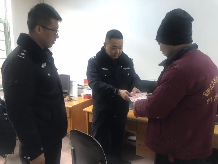 城關(guān)派出所值班民警王云龍、姚遠立即詢問詳情。原來系失主楊某在西門口農(nóng)行提款機取出的三萬元現(xiàn)金裝在上衣兜里面,自己開車從西門口前往上河郡以后,發(fā)現(xiàn)一萬元現(xiàn)金不見了。民警立即梳理楊某行進的路線,經(jīng)初步調(diào)查,系現(xiàn)金遺失。雖不是案子,但一萬元現(xiàn)金不是小數(shù)目,民警不敢怠慢。王云龍安排協(xié)警白會龍一方面緊急調(diào)越楊某行進路線的監(jiān)控,一方面民警姚遠帶領(lǐng)劉旭東、閆鑫組織人員立即上街摸排,以防好心群眾撿拾后找不到失主。時間過去了2小時,依然沒有得到突破。上河郡小區(qū)附近監(jiān)控當(dāng)日集體“失明”。民警進一步對楊某進行詢問,得知其駕駛的三輪電瓶車曾在上河郡小區(qū)內(nèi)短暫停留,民警立即前往上河郡小區(qū),在小區(qū)內(nèi)聯(lián)手保安物業(yè)等管理人員,仔細盤查當(dāng)時當(dāng)?shù)鼗顒尤巳旱目梢蓜酉?。?jīng)過大量工作,最終,民警得知一老漢與楊某共同踏進一棟樓內(nèi),隨后該老漢“銷聲匿跡”。民警于是走訪找到該老漢,其很快就承認了撿拾到現(xiàn)金的事實,并主動將一萬元現(xiàn)金交到民警手中。民警第一時間將現(xiàn)金送還失主,完璧歸趙,失主喜極而泣。