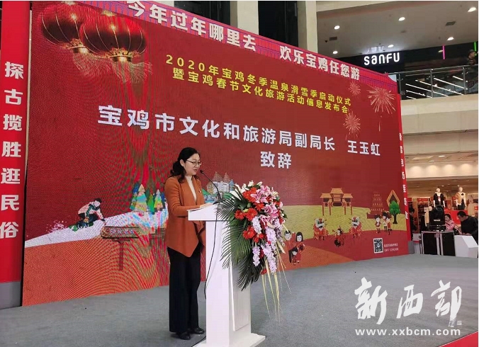 信息發(fā)布會上,寶雞市文化和旅游局副局長王玉虹全面發(fā)布2020年寶雞春節(jié)文化旅游活動相關信息。寶雞春節(jié)文化旅游活動將在一個月時間內(nèi)密集推出市內(nèi)、縣區(qū)、景區(qū)以民俗、美食、滑雪、溫泉、攬勝為主要內(nèi)容的150余場精彩春節(jié)文化旅游盛宴。推出了八條春節(jié)文化旅游精品線路和70余個春節(jié)文化旅游好去處,寶雞春節(jié)文化旅游活動持續(xù)時間長、內(nèi)容精彩豐富、形式多種多樣,必將引爆春節(jié)文化旅游消費市場。節(jié)前,寶雞市文化和旅游局還開展了文化旅游市場大排查、大檢查、大督查專項整治活動,全力為廣大游客營造一個安全有序的春節(jié)文化旅游市場。