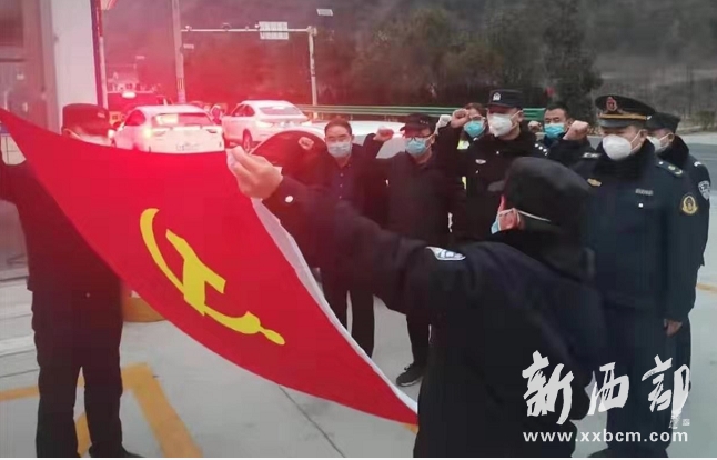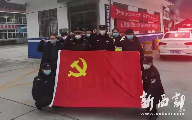 “我愿堅(jiān)守一線,勇于擔(dān)當(dāng),沖鋒在前,堅(jiān)決打贏疫情防控阻擊戰(zhàn)”。1月31日下午,新成立的王家堎疫情排查防控卡點(diǎn)臨時(shí)黨支部在書(shū)記王濤的帶領(lǐng)下,全體值守人員面對(duì)黨旗,許下了錚錚誓言,這是太白縣應(yīng)對(duì)疫情防控阻擊戰(zhàn)成立的首個(gè)臨時(shí)黨支部。