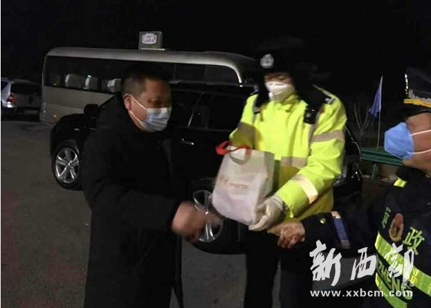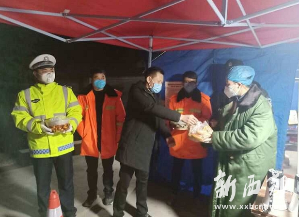 2月6日晚,印象成都火鍋店經(jīng)理韓利平深入省際隴關(guān)公安檢查站、隴縣高速出口疫情防控檢查點(diǎn)、212省道隴縣堯場(chǎng)檢查點(diǎn)向民警送來了熱騰騰的愛心晚餐、方便面和飲品。