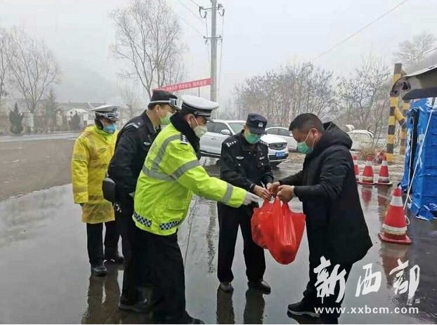 2月3日,隴縣青年協(xié)會(huì)向省際隴關(guān)公安檢查站、隴縣高速出口疫情防控檢查點(diǎn)一線執(zhí)勤人員送來了方便面、水果、飲品等。