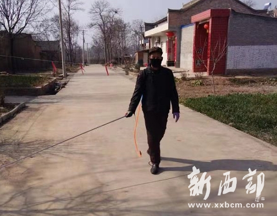 現(xiàn)年50歲的崔栓鎖,是岐山縣蒲村鎮(zhèn)祥和村西劉組建檔立卡貧困戶。本可以很清閑的過春節(jié),崔栓鎖卻過得卻一點(diǎn)也不清閑。為了搭建村口疫情防控檢查站,他把家里的彩條布、竹竿、桌子等統(tǒng)統(tǒng)派上了用場(chǎng),忙得腳不沾地;從大年初二開始,他要么是入戶宣傳,要么是在村口檢查站值班,要么就是背起噴霧器為村子噴灑消毒藥水……短短十幾天來,整個(gè)人也瘦了許多。
