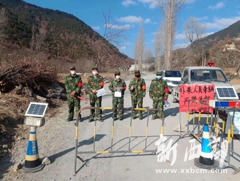 沙壩村是河口鎮(zhèn)最為偏遠(yuǎn)的一個(gè)村,全村人外出只有一個(gè)大的路口。這支民兵志愿者隊(duì)伍在路口設(shè)立了監(jiān)測(cè)點(diǎn),他們逐個(gè)盤查外來人員車輛,問來由、測(cè)體溫、做記 錄,一絲不茍;鉆溝爬坡,挨家挨戶的走訪排查摸底,耐心細(xì)致地宣傳疫情防控知識(shí),引導(dǎo)村民做好個(gè)人衛(wèi)生防護(hù),佩戴口罩出行,不串門、不聚餐。