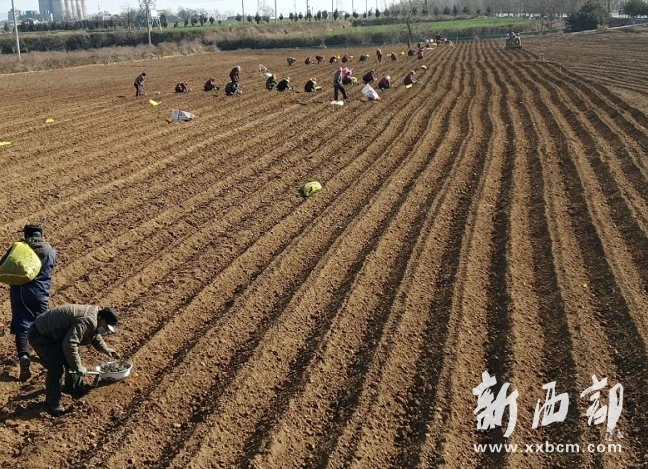 2月17日,岐山縣蒲村村千畝中藥材園內(nèi),32名群眾通過(guò)村組織的體溫檢查和消毒后,佩戴口罩,采取分散作業(yè)的方式正在進(jìn)行白芷種植。