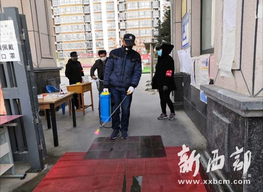 鳳儀東路社區(qū)開(kāi)展疫情防控工作注重科學(xué)防治,一方面管住人,嚴(yán)防人員攜帶病毒進(jìn)出小區(qū),另一方面在各小區(qū)無(wú)死角噴灑消毒液,消殺潛在病毒,內(nèi)外兼顧,聯(lián)防聯(lián)控,全面筑牢疫情斗爭(zhēng)“防護(hù)墻”。