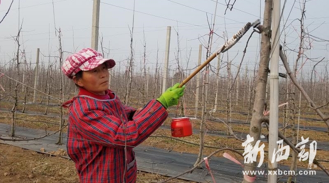 正在給果樹剪鋸口涂抹傷口保護劑的馬乖萍告訴記者,這幾天是果樹管理的最佳時節(jié)。“果樹的剪鋸口涂上保護劑,可以保持果樹水分,防止樹干腐爛,別看很簡單,這些環(huán)節(jié)必不可少?!?/p>