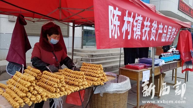 2月28日,鳳翔縣陳村鎮(zhèn)集市新添了一個(gè)特別的展銷點(diǎn)——陳村鎮(zhèn)扶貧產(chǎn)品展銷點(diǎn),攤位上擺滿了笤帚、麻花、豆腐、豆芽、香醋等農(nóng)家產(chǎn)品,經(jīng)營者都是陳村鎮(zhèn)的貧困戶。