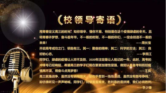 “園中花開靜待碩果,劍指高考不負青春”,多年以后,回憶起2020年,回憶這一年的這場疫戰(zhàn),回憶這一年的高考,我們應(yīng)該明白的不僅僅是生命的意義,更重要的是在將來的生命歷程中,明白信心和決心、專心和盡心、恒心和耐心的意義!