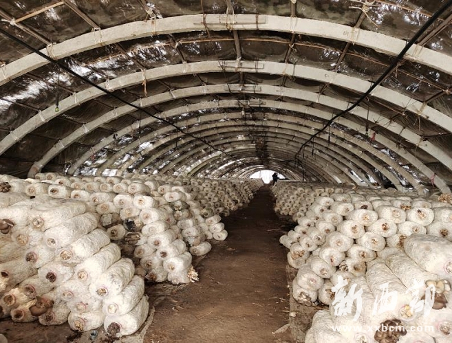 三里河村黨支部書記馬周田告訴記者,這個(gè)基地除了生產(chǎn)平菇,還加工菌棒,寶雞地區(qū)90%的菌棒都來(lái)自這里。
