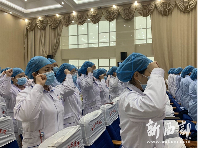 救死扶傷是醫(yī)務(wù)工作者的神圣……1月26日下午,該院舉行了抗擊“新型冠狀病毒感染的肺炎”疫情防控誓師大會,數(shù)百名清一色的護(hù)理人員集體宣誓,她們立下“軍令狀”,鏗鏘有力的話語久久回蕩在會議廳里。