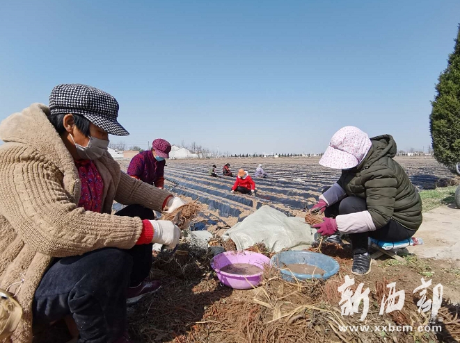 3月4日,鳳翔縣城關(guān)鎮(zhèn)六營(yíng)村千畝丹參種植基地一片繁忙景象,該村80余名群眾正在整地、鋪膜、揀苗、挖坑、移栽丹參。 據(jù)了解,該基地由陜西新天潤(rùn)農(nóng)林科技有限公司投資540萬興建,流轉(zhuǎn)土地1500畝計(jì)劃建成千畝丹參種植基地,目前已栽種1000余畝。