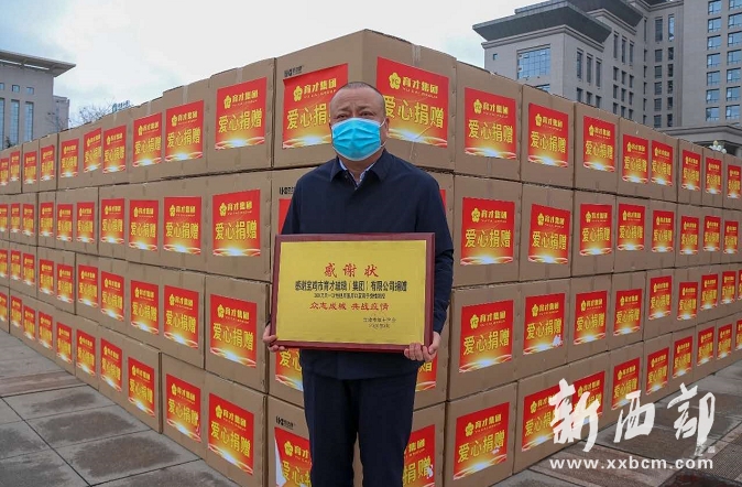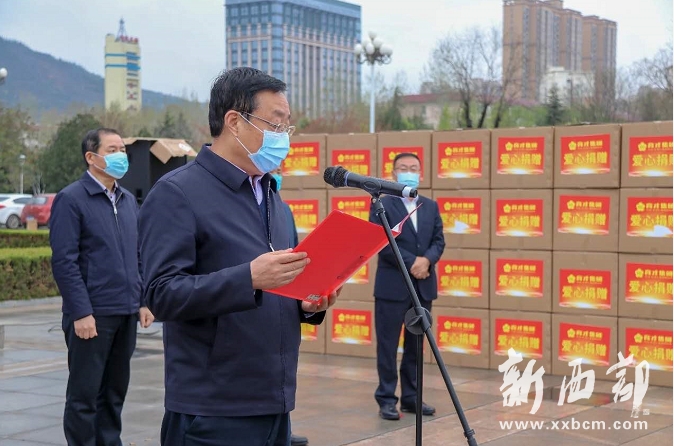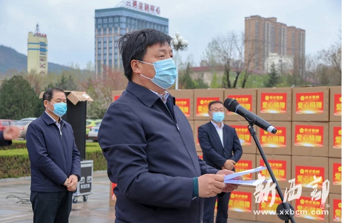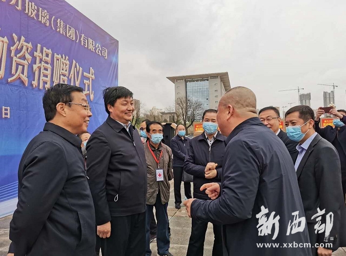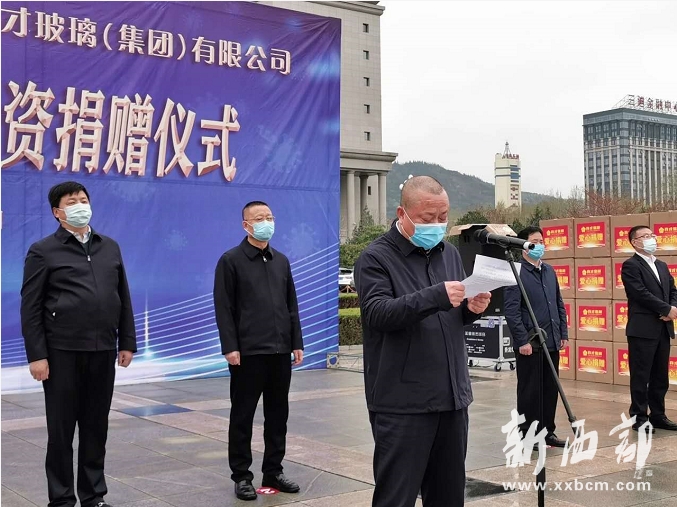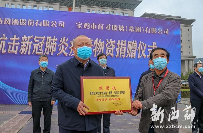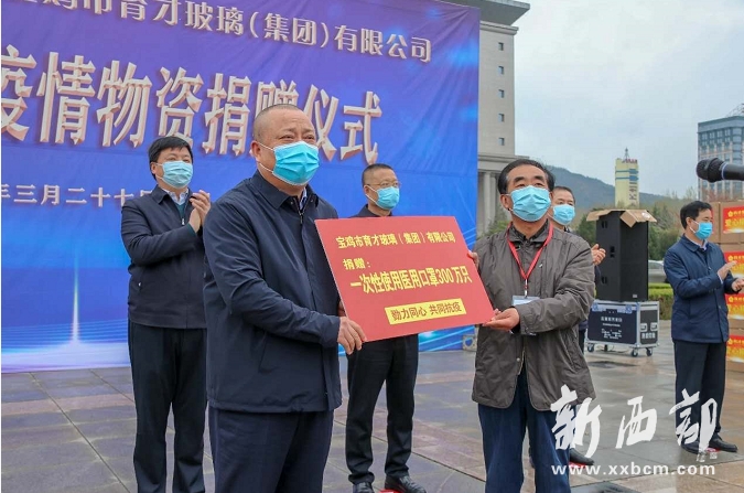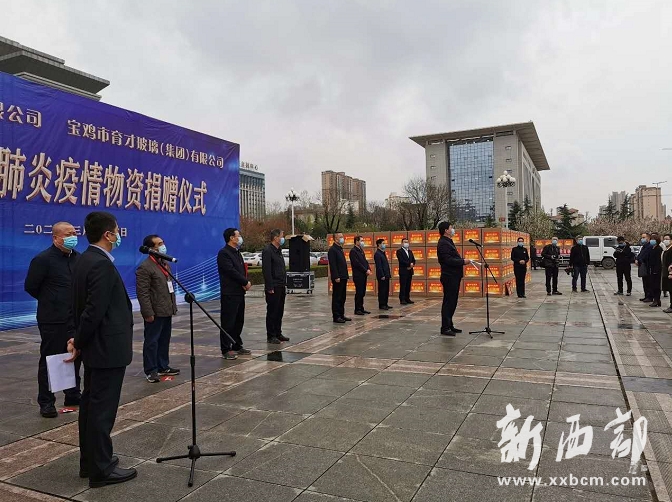 3月27日上午,寶雞市育才玻璃(集團(tuán))有限公司抗擊新冠肺炎疫情物資捐贈(zèng)儀式在寶雞市行政中心南廣場舉行。