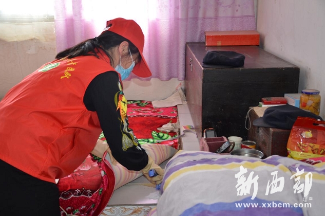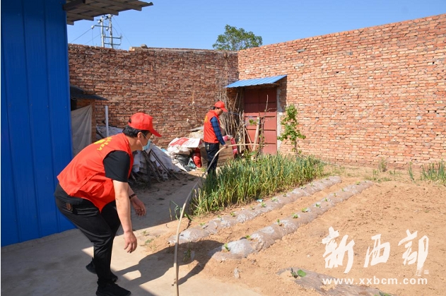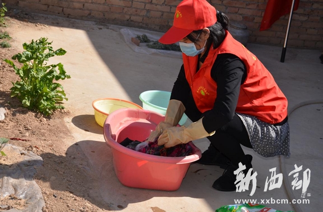一到殘疾人劉周科家,大家立即行動起來。程曉軍和強淑媛接通塑料水管,開動水泵,給他家院子后面的一方菜園澆水。正在成長的蔬菜和剛露頭的小苗在陽光下煥發(fā)出新的生機和活力。志愿者董艷麗、張勇等人身穿紅馬甲,頭戴小紅帽開始忙碌。他們有的為兩位老人打掃臥室,有的清掃廚房,有的整理院子里堆放的農(nóng)具、糧食、化肥等。樊曉莉主動把老人家換下來的床單、被罩、衣服逐件清洗干凈,晾曬起來。張宏全、肖鎖應(yīng)兩位老同志也爭先恐后搶著干活。大家一起清理老人的家具、生活用品,合伙把院落打掃的干干凈凈的。最后,強淑媛為整個院子灑水、除塵、潤濕。