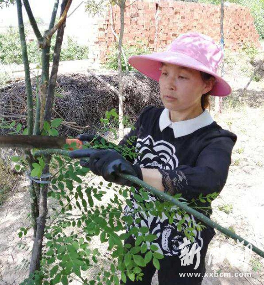 王艷妮是一個(gè)要強(qiáng)的人,心不服輸,手腳不停。村上將一片12畝荒地開荒,由于土壤原因村中沒人承包,2016年,在村兩委的幫助下,王燕妮主動(dòng)申請(qǐng)承包了下來。第一年,她在地中種植8畝西瓜,當(dāng)年一下就收入2萬元,之后,又在地里種植了國(guó)槐,到現(xiàn)在,國(guó)槐已經(jīng)基本成形。村上的群眾給我們算了帳:王燕妮地中共有國(guó)槐2000個(gè),按每個(gè)市場(chǎng)價(jià)20元,至少也可以有4萬元的收入。