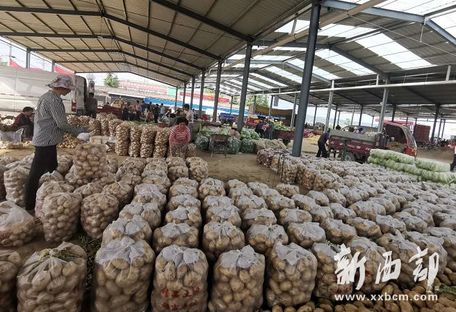 陽(yáng)平鎮(zhèn)蔬菜批發(fā)市場(chǎng)改擴(kuò)建項(xiàng)目的投用,標(biāo)志著東枸村“小土豆”產(chǎn)業(yè)發(fā)展有了穩(wěn)健的落腳點(diǎn)。除了為當(dāng)?shù)剞r(nóng)戶(hù)蔬菜交易提供了更大的空間和便利以外,還刺激了蔬菜種植產(chǎn)業(yè)向周邊村輻射發(fā)展,從而加速形成“產(chǎn)銷(xiāo)一體化”有利局面。當(dāng)前,在東枸村的輻射帶動(dòng)下,陽(yáng)平鎮(zhèn)及周邊地區(qū)土豆種植規(guī)模已破萬(wàn)畝,“供應(yīng)充足,價(jià)廉物美”已成為東枸村土豆閃亮的名片。每到收獲季節(jié),慕名而來(lái)的各地蔬菜采購(gòu)商絡(luò)繹不絕,單單是土豆的日均交易量就達(dá)400噸,日均銷(xiāo)售額可達(dá)60萬(wàn)元。不知不覺(jué)中,這里已經(jīng)成為本地乃至鄰省蔬菜供應(yīng)鏈當(dāng)中不可或缺的重要環(huán)節(jié),同時(shí)為陽(yáng)平鎮(zhèn)脫貧攻堅(jiān)工作提供了堅(jiān)強(qiáng)的戰(zhàn)斗堡壘。